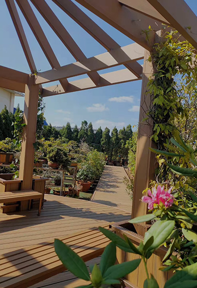 江蘇??菩虏牧嫌邢薰咀溆诮K省灌南縣經開區,地理優越,交通便利,離長深高速出口及高鐵站僅5分鐘路程。本公司是一家專注戶外木塑型材研發,生產,營銷為一體的朝陽企業。公司目前主要產品有各種規格的戶外木塑地板,護欄,花架,花箱,涼亭。產品既有天然木質紋理感,又色彩多姿多樣贏得客戶的信賴的同時也為企業贏得市場。